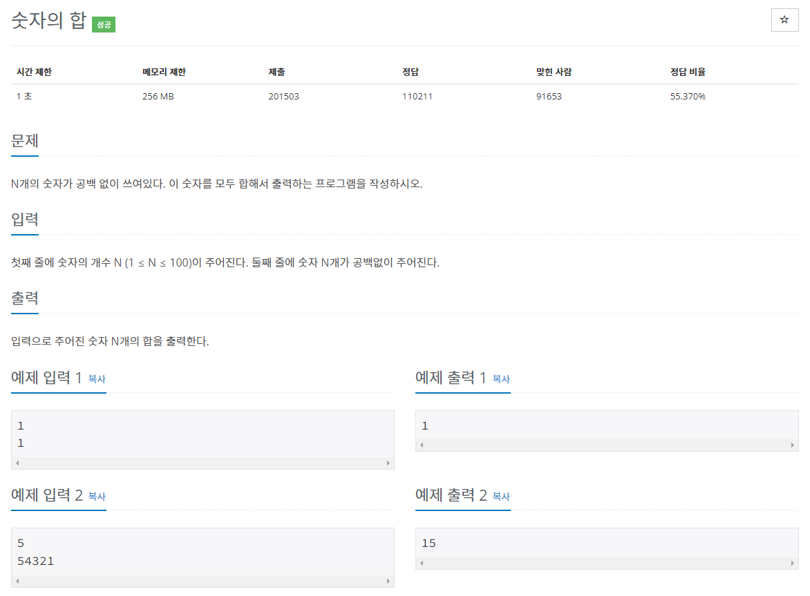 JavaScript 코딩테스트 7. 문제(백준 11720번) 본문