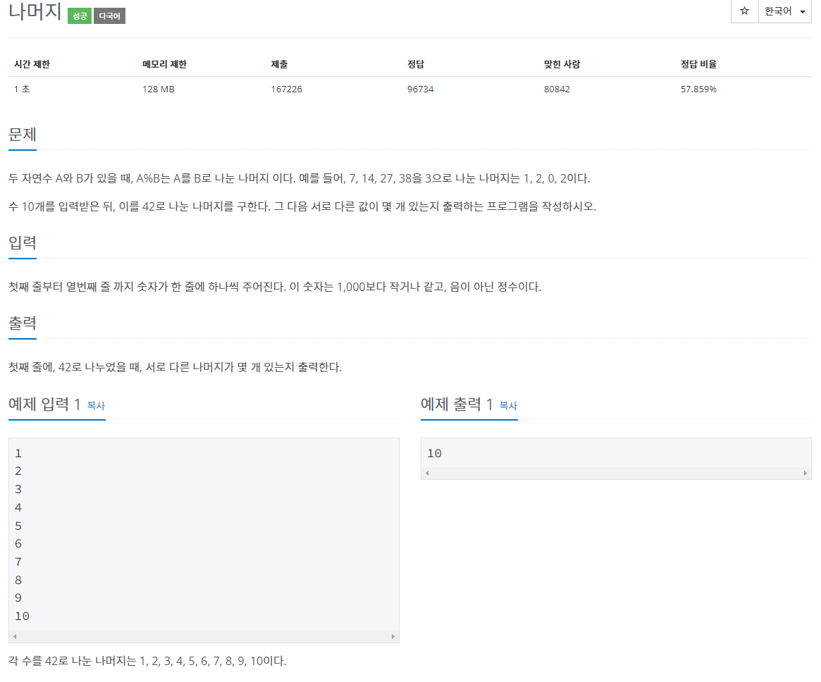 JavaScript 코딩테스트 6. 문제(백준 3052번) 본문